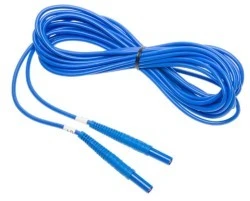 Przewód pomiarowy Sonel o długości 6 m w kolorze niebieskim i napięciu znamionowym 1 kV, U2. Przewód zakończony łatwymi w montażu wtykami bananowymi.