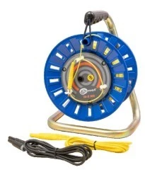 Przewody ekranowane dedykowane są do pomiarów uziemień metodą udarową, gdzie duży wpływ na wynik mogą mieć zakłócenia pochodzące z otaczającego pola elektromagnetycznego. Nawinięty na bęben przewód posiada jeden wtyk zakończony lamelką 4 mm. Drugi koniec przewodu składa się z dwóch wyprowadzeń (gniazd pomiarowych) - po jednym dla żyły roboczej i ekranu - zabudowanych na boku szpuli. W zestawie znajdują się również dodatkowe przewody do podłączenia szpuli do miernika. Całości obrazu dopełnia metalowy, stabilizujący stojak.