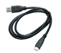 Przewód do transmisji danych między urządzeniem a komputerem, zakończony z jednej strony wtykiem USB typu A, a z drugiej wtykiem USB typu C.