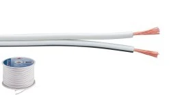 Kabel głośnikowy “STANDARD QUALITY” · Szpula 100m · Oznaczenie żyły kolorem Przeznaczenie głośnikowy Długość 100 m Kolor biały Żyły 2 x 0.75 mm2 Materiał miedź Liczba żył 2 Średnica zewnętrzna 2 x Ø 2.4 mm Opakowanie szpula Waga 2.3 kg Inne cechy oznaczenie żyły Waga netto 2.31 kg