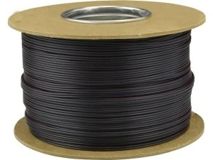 Wysokiej jakości przewód głośnikowy płaski o żyle wielodrutowej (giętki, linka) i izolacji polwinitowej. Jedna z żył oznaczona kolorem czerwonym.