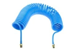 Mały poliuretan RS Pro. Cewki linii powietrza RS Pro charakteryzują się doskonałą odpornością na ścieranie i zakurczanie. Przewody powietrzne są wyposażone w połączenia obrotowe 1/4" i 3/8" BSPT ze sprężynami i są dostępne w długościach 2 m, 4 m lub 6 m. Te spirale przewodów powietrznych idealnie nadają się do stosowania w zamkniętych pomieszczeniach i są przystosowane do pracy pod ciśnieniem do 10 barów.