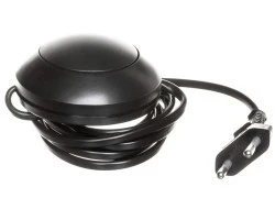 Przewód H03VVH2-F 2 x 0,75 mm2, o długości 300 cm,płaska wtyczka i łącznik nożny 2,5 A / 250 V AC z tworzywa sztucznego zamontowany 50 cm od końca przewodu.Opakowanie: woreczek z zawieszką. Kolor czarny.