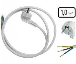 Dodatkowo przewód posiada wtyczkę kątową z uziemieniem uni-schuko. Jest w kolorze białym.