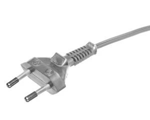 Przewód H03VVH2-F 2 x 0,75 mm2, o długości 300 cm z płaską wtyczką.Kolor srebrny.