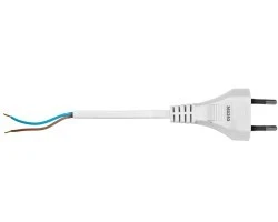 Warto wiedzieć, z jakich materiałów wykonano ten model. Zewnętrzną powłokę zrobiono bowiem z tworzywa PVC. Jest to niezwykle wytrzymałe tworzywo sztuczne, odporne na zarysowania oraz uszkodzenia mechaniczne, a także na szkodliwe działanie rozpuszczalników. Wybierając przewód, warto z całą pewnością zapoznać się jego wymiarami. Długość tego przewodu przyłączeniowego jest równa 2 metry. Natomiast przekrój poprzeczny żył wynosi 0,5 mm2. Ten model ma dwie takie żyły. Wartość napięcia znamionowego jest równa 250 V.. Funkcję połączenia pełni wtyczka EURO.