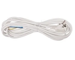 Wspomniany przewód przyłączeniowy należy do kategorii przewodów w izolacji PVC. Produkt jest dostępny w uniwersalnym, białym kolorze. Ponadto warto zwrócić uwagę ma materiał, jakiego użyto do wykonania tego modelu. Jest to bowiem starannie dobrane tworzywo sztuczne. Dzięki niemu produkt dłużej zachowa swój dobry wygląd. Warto znać wymiary tego produktu. Długość przewodu zasilającego jest w tym przypadku równa 5 metrów.