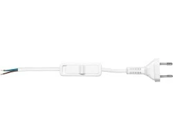 Przewód H03VVH2-F 2 x 0,75 mm2, o długości 300 cm,płaska wtyczka i łącznik przelotowy 2,5 A / 250 V AC z tworzywa sztucznego.Opakowanie: woreczek z zawieszką.Kolor biały.