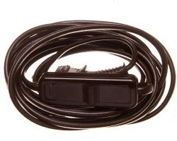 Przewód H03VVH2-F 2 x 0,75 mm2, o długości 300 cm,płaska wtyczka i łącznik przelotowy 2,5 A / 250 V AC z tworzywa sztucznego.Opakowanie: woreczek z zawieszką.Kolor brązowy.
