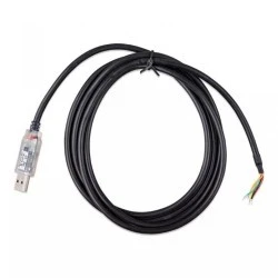 Przewód konwerter RS485 tu USB dedykowany jest do podłączania urządzeń po protokole komunikacyjnym RS485 do przetwornic Victron Energy. Wykorzystywany może być np przy współpracy z urządzeniem MultiPlus II przy pracy jako ESS magazyn energii lub z innymi urządzeniami marki Victron jak Quattro. Występuje w dwóch długościach 1.8 metra oraz 5 metrów. Przewód z jednej strony zakończony zwykłym drucikiem z drugiej końcówką USB wtyk.