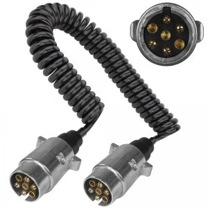 Wysokiej jakości spiralny przewód samochodowy, zakończony uniwersalnymi wtyczkami 7-pinowymi, stosowany do połączenia instalacji elektrycznej 12V pomiędzy pojazdem ciągnącym, a przyczepą, przyczepką lub lawetą. Zapewnia stałe połączenie gwarantując nieprzerwane działanie świateł podczas jazdy.