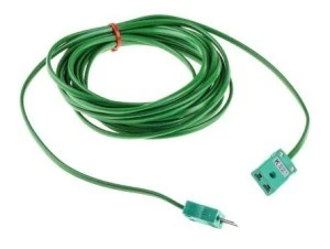 Przewody rozszerzeń termopary. Szereg przewodów przedłużających termopary w typach K, J, T i N dostępnych z miniaturowym lub standardowym złączem IEC. Przewody przedłużenia termopary są dostępne w długościach 2 m, 5 m i 10 m.. Budowa kabla:. Kabel izolowany PVC Oznaczenie barwne IEC Ułożone płasko, obok siebie i w osłonie z PCW Stopień izolacji -10 → 105 °C. Dostępne wersje z wtykami miniaturowymi (styki z płaskim wtykiem) lub standardowym złączem (pełne okrągłe styki) Styki są polaryzowane, aby zapobiec nieprawidłowemu połączeniu