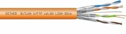 Bezhalogenowe kable do sieci teleinformatycznych o podwyższonych wymaganiach przeciwpożarowych. BiTLAN U/FTP cat.6A LSOH B2ca przeznaczone są do pracy w sieciach komputerowych, w których wykorzystywane jest pasmo częstotliwości do 500MHz. Przeznaczone są do transmisji danych, dźwięku i obrazu telewizyjnego o przepustowości binarnej do 10Gb/s. Indywidualnie ekranowane pary folią Al/Pet dodatkowo wpływają na poprawę parametrów teletransmisyjnych niwelując zakłócenia zewnętrzne oraz występujące między parami dlatego można je stosować w sieciach przemysłowych narażonych na oddziaływanie zewnętrznych zakłóceń elektromagnetycznych. Kable stosuje się do ułożenia na stałe w tzw. okablowaniu strukturalnym wewnątrz budynków zgodnie ze standardem PN-EN 50173-1, ISO/IEC 11801-1, ANSI/TIA 568-C.2. Posiadają powłokę bezhalogenową LSOH nierozprzestrzeniającą płomienia o bardzo niskiej emisji dymów wg EN 50268, IEC 61034-1(2) i o ograniczonym wydzielaniu gazów korozyjnych wg EN 50267, IEC 60754-2, która umożliwia zastosowanie kabla w miejscach o podwyższonych wymaganiach przeciwpożarowych. Kable sklasyfikowane zgodnie z normą PN-EN 50575 (CPR) o klasie reakcji na ogień B2ca. Podstawowe · Rodzaj: Kable teleinformatyczne · Napięcie pracy: 150 V · Próba napięciowa: 700V AC; 1000V DC · Rezystancja izolacji: 2GΩxkm · Pojemność: 45±5nF/km Temperatura pracy · Temperatura przy ułożeniu na stałe od: -30°C · Temperatura przy ułożeniu na stałe do: 70°C · Min. temperatura układania: -10°C Rezystancja pętli żył/pary w temp. 20°C (max): 145Ω/km Asymetria rezystancji żył w parze: ≤2% Asymetria pojemności torów transmisyjnych względem ziemi przy 1kHz (max): 1600pF/km Impedancja falowa przy częstotliwości 100MHz: 100±5Ω Konstrukcja kabla · Materiał żył: żyły miedziane · Budowa żył roboczych: żyła jednodrutowa · Rodzaj izolacji: PE · Ekran: ekran foliowy · Konstrukcja ośrodka: kabel parowany / trójki / czwórki · Rodzaj powłoki: LSOH · Kolor powłoki: pomarańczowy Własności ogniowe i funkcyjne · Niska emisja dymów EN 61034, Bezhalogenowy · Klasyfikacja ogniowa: B2ca Nierozprzestrzenianie płomienia · Na pojedynczym kablu Warunki układania · Kabel wnętrzowy · Systemy bezpieczeństwa: BMS