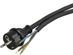 Polskiej produkcji, wysokiej jakości przewód przyłączeniowy w powłoce gumowej zakończony fabrycznie zalewaną, nierozbieralną wtyczką prostą z uziemieniem.