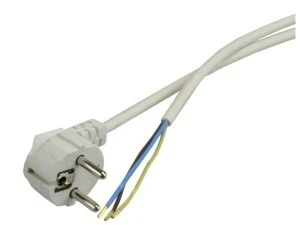 Wysokiej jakości przyłączeniowy przewód zakończony fabrycznie zalewaną, nierozbieralną wtyczką kątową z uziemieniem. Z drugiej strony żyły przewodu zakończone tulejkami ułatwiającymi podłączenie do urządzenia. Doskonale sprawdzi się do wszystkich urządzeń stałych i przenośnych.