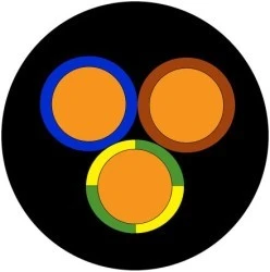 IEC 60502-1. Kabel zasilający RS PRO NIYY-J. Ze złącza RS PRO wysokiej jakości przewód zasilający NYY-J jest również znany jako przewód sterowania zasilaniem z osłoną zewnętrzną PVC i znamionowym napięciem 600/1000 V. Durable i ekonomiczny kabel zasilający jest używany do zasilania prądem elektrycznym w stałych instalacjach okablowania wewnątrz i na zewnątrz pomieszczeń. Przewód może być zakopany bezpośrednio pod ziemią, w cegiełkach, w betonie i zanurzony pod wodą przez ograniczony czas. Budowa kabla. Ten elektryczny przewód zasilający składa się z rdzeni składających się z żył miedzianych o wysokiej wytrzymałości zgodnych z normą IEC 60228 klasa 1. Każda żyła jest otoczona izolacją z PVC (chlorku poliwinylu) o odpowiednim kolorze, co ułatwia identyfikację żył. Rdzenie są następnie otoczone końcową warstwą zewnętrznego twardego PVC nazywanego osłoną lub płaszczem. Ten kabel zasilający posiada również wypełniacz, który wypełnia szczeliny pomiędzy rdzeniami i osłoną zewnętrzną, zapewniając okrągły kształt przewodu. Charakterystyka i zalety. Nałożność płomienia do IEC 60332-1 i EN 50265-2-1 Mechaniczne, Durable i odporne na ścieranie Promienie UV i odporność na warunki atmosferyczne Lekka konstrukcja Dobre właściwości elektryczne i izolacyjne Żaroodporna na korozję i zatarcia Ekonomiczna oszczędność dzięki długiemu okresowi eksploatacji kabli. Gdzie jest używany ten kabel?. Przewód zasilający NYY-J może być używany zarówno na wolnym powietrzu, jak i w pomieszczeniach, gdzie występuje niewielkie ryzyko wystąpienia naprężeń mechanicznych. Przewód zasilający można pochować bezpośrednio pod ziemią, w cegiełkach i betonie, pod warunkiem, że beton nie zostanie potrząśnięty, wibracyjny ani ściśnięty. Kabel może być zanurzony w wodzie przez okres nie dłuższy niż 2 tygodnie. Jeśli ten przewód sieciowy musi być zgodny z brytyjską normą BS7671 dotyczącą zakopania w ziemi, powinien być on zainstalowany w kanale kablowym lub przewodach, które zabezpieczają kabel zasilający przed uszkodzeniami mechanicznymi. Do tego przewodu zasilającego można podłączyć następujące urządzenia:. Stałe zastosowania wewnętrzne i zewnętrzne Stacje nadawcze Elektrownie elektryczne Zakłady przemysłowe Sieci metropolitalne Połączenie urządzeń sygnalizacyjnych w branży i w światłach drogowych