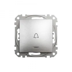 Przycisk 1-biegunowy "dzwonek" z podświetleniem, szczotkowane aluminium, efekt metalu, to osprzęt serii Sedna Design & Elements marki Schneider Electric. Przycisk 1-biegunowy ma satynowe wykończenie powierzchni w kolorze szczotkowanego aluminium i posiada następujące wymiary: szerokość 73 mm, wysokość 73 mm, głębokość 37 mm, głębokość wystawania 24 mm. Długość izolacji zdejmowanej z kabla to 13 mm. Przycisk charakteryzuje się stopniem ochrony IP20 i zakresem mocy wynoszącym 2300 W. Do produkcji przycisku wykorzystano tworzywo termoplastyczne o zwiększonej odporności na promieniowanie UV, które doskonale imituje naturalne materiały. Produkt jest montowany podtynkowo i posiada zaciski bezśrubowe. Uwaga: produkty Sedna Design & Elements nie są kompatybilne z serią Sedna!