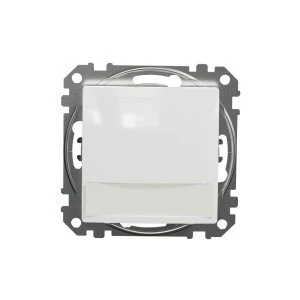 Przycisk 1-biegunowy z etykietą, podświetleniem, biały, to osprzęt serii Sedna Design & Elements marki Schneider Electric. Przycisk 1-biegunowy ma lśniące wykończenie powierzchni w kolorze białym i posiada następujące wymiary: szerokość 73 mm, wysokość 73 mm, głębokość 37 mm, głębokość wystawania 24 mm. Długość izolacji zdejmowanej z kabla to 13 mm. Przycisk charakteryzuje się stopniem ochrony IP20 i zakresem mocy wynoszącym 2300 W. Do produkcji przycisku wykorzystano tworzywo termoplastyczne o zwiększonej odporności na promieniowanie UV. Produkt jest montowany podtynkowo i posiada zaciski bezśrubowe. Urządzenie może byc wykorzystywane jako tradycyjny włącznik światła we współpracy z przekaźnikiem impulsowym, przycisk dzwonkowy lub służyć do załączania innych urządzeń o maksymalnym poborze prądu do 10 A.Uwaga: produkty Sedna Design & Elements nie są kompatybilne z serią Sedna!