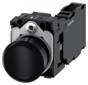 Przycisk, 22 mm, okrągły, plastikowy, czarny, przycisk, płaski, zestyk chwilowy, z uchwytem 1 NO + 1 NC 3SU1100‑0AB10‑1FA0
