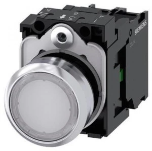 Przycisk 22 mm, round, metal, shiny, white, pushbutton, flat, momentary contact type, with holder, 1 NO, LED modu