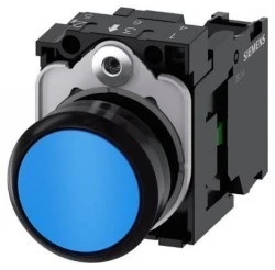 Przycisk 22 mm, round, plastic, blue, flat, momentary contact type, with holder 1 NO, screw terminal 3SU1100‑0AB50‑1BA0