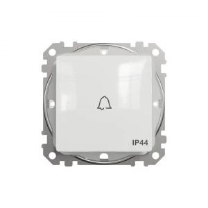Przycisk "dzwonek" IP44, biały, to osprzęt serii Sedna Design & Elements marki Schneider Electric. Przycisk "dzwonek" IP44 ma lśniące wykończenie powierzchni w kolorze białym i posiada następujące wymiary: szerokość 73 mm, wysokość 73 mm, głębokość 38 mm, głębokość wyst awania 24 mm. Długość izolacji zdejmowanej z kabla to 13 mm. Przycisk charakteryzuje się stopniem ochrony IP44 i zakresem mocy wynoszącym 2300 W. Do produkcji przycisku wykorzystano tworzywo termoplastyczne o zwiększonej odporności na promieniowanie UV. Produkt jest mon towany podtynkowo i posiada zaciski bezśrubowe. Uwaga: produkty Sedna Design & Elements nie są kompatybilne z serią Sedna!