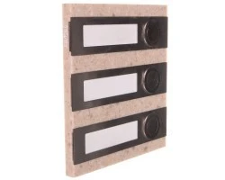 Przycisk natynkowy z wizytówką,obudowa z wysoko wytrzymałego materiału imitującego kamień naturalny 9kolor beżowy),przeznaczony do budynku trzyapartamentowego,przeznaczony do instalacji dzwonkowej i domofonowej,możliwość sterowania zamka elektromagnetycznego lub innych urządzeń niskiego napięcia (do 50 V AC),przycisk nieprzystosowany do pracy w zmiennych warunkach atmosferycznych,dostępny w opakowaniu jednostkowym (blister).