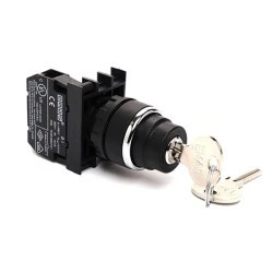 Przycisk kluczykowy serii B. Korpus z tworzywa. Kluczyk wyciągany w pozycji 0, 1NO, stabilny, 0-I.