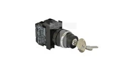 Przycisk kluczykowy serii B. Korpus z tworzywa. Kluczyk wyciągany w pozycji 0, 2NO, stabilny, II-0-I.