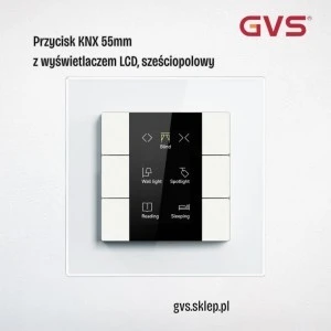 Przycisk KNX 55mm 6-polowy biały z LCD