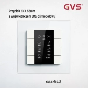 Przycisk KNX 55mm 8-polowy biały z LCD