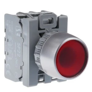 PRZYCISK KRYTY PODŚW BSP CZERWONY 1ZW1RZ PIERŚCIEŃ NIKLOWANY SP22‑AKLC‑11‑24‑BA9S.