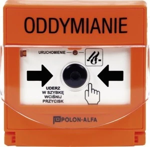 to przycisk PO-61 marki #Polon-Alfa uruchamiania klap dymowych przeznaczony w systemach automatyki pożarowej. Przyciski współpracuje z centralą sterującą UCS 4000 oraz UCS 6000.