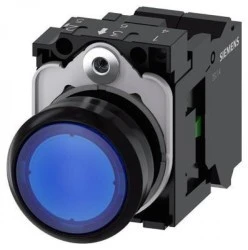 Przycisk okrągły, podświetlany, 22 mm, tworzywo, niebieski, przycisk, płaski, ze stykiem chwilowym, z uchwytem3SU1102‑0AB50‑3BA0