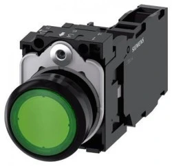 Przycisk podświetlany, 22 mm, okrągły, plastikowy, zielony, przyciskowy, płaski, z zestykiem chwilowym, z uchwytem, ​​1 NO+1 NC