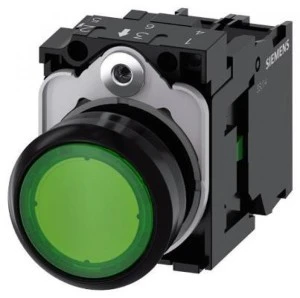 Przycisk podświetlany, 22 mm, okrągły, plastikowy, zielony, przyciskowy, płaski, z zestykiem chwilowym, z uchwytem, ​​1 NO, modu
