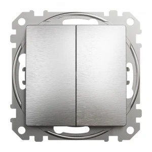 Przycisk podwójny, szczotkowane aluminium, efekt metalu, to osprzęt serii Sedna Design & Elements marki Schneider Electric. Przycisk podwójny ma satynowe wykończenie powierzchni w kolorze szczotkowanego aluminium i posiada następujące wymiary: szerokość 73 mm, wysokość 73 mm, głębokość 37 mm, głębokość wystawania 24 mm. Długość izolacji zdejmowanej z kabla to 13 mm. Przycisk charakteryzuje się stopniem ochrony IP20 i zakresem mocy wynoszącym 2300 W. Do produkcji przycisku wykorzystano tworzywo termoplastyczne o zwiększonej odporności na promieniowanie UV, które doskonale imituje naturalne materiały. Produkt jest montowany podtynkowo i posiada zaciski bezśrubowe. Uwaga: produkty Sedna Design & Elements nie są kompatybilne z serią Sedna!