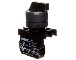 Przycisk pokrętny serii B. Korpus z tworzywa. 1NO, stabilny, 60 stopni, 0-I.