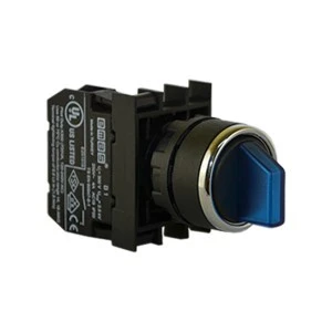 Przycisk pokrętny serii B. Korpus z tworzywa. 1NO, stabilny, 0-I, niebieski, możliwość podświetlenia poprzez dołączenie elementu podświetlającego T0-B*, *kolor, zasilanie 100-230V AC lub 12-30V AC/DC.