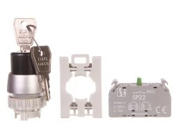 Przycisk pokrętny 2 położeniowy klucz 1Z pierścień niklowany SP22‑SAA‑10.