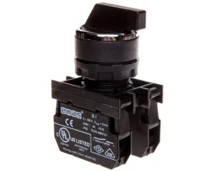 Przycisk pokrętny serii B. Korpus z tworzywa. 2NO, stabilny, 60 stopni, II-0-I.