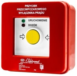 Ręczny przycisk przeciwpożarowego wyłącznika prądu PWP1 (1NO i 1NC) z certyfikatem CNBOP - 2LED zielony/czerwony 24VDC