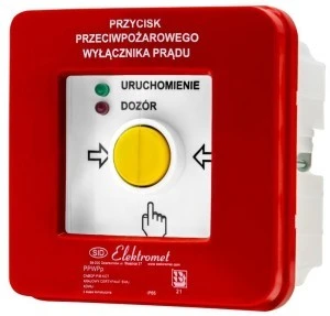 Ręczny przycisk przeciwpożarowego wyłącznika prądu PWP1 (1NO i 1NC) z certyfikatem CNBOP - 2LED zielony/czerwony 24VDC