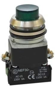 Przycisk sterowniczy 30mm powrotny wysoki, z podświatleniem, zielony 24V 1Z 1R NEF30‑WLXY/24V W0‑NEF30‑WL XY Z