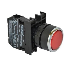 Przycisk sterowniczy serii B z tworzywa, kryty, niestabilny, czerwony, możliwość podświetlenia poprzez dołączenie elementu podświetlającego T0-B*, *kolor, zasilanie 100-230V AC lub 12-30V AC/DC.
