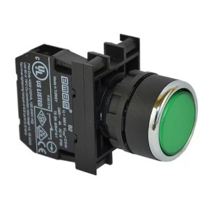 Przycisk sterowniczy serii B z tworzywa, kryty, niestabilny, zielony, możliwość podświetlenia poprzez dołączenie elementu podświetlającego T0-B*, *kolor, zasilanie 100-230V AC lub 12-30V AC/DC.