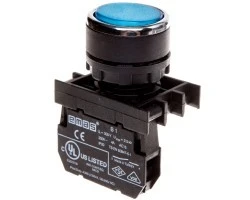 Przycisk sterowniczy serii B z tworzywa, kryty, niestabilny, niebieski, możliwość podświetlenia poprzez dołączenie elementu podświetlającego T0-B*, *kolor, zasilanie 100-230V AC lub 12-30V AC/DC.