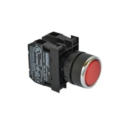 Przycisk sterowniczy serii B z tworzywa, kryty, niestabilny, czerwony, możliwość podświetlenia poprzez dołączenie elementu podświetlającego T0-B*, *kolor, zasilanie 100-230V AC lub 12-30V AC/DC.