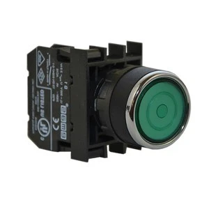 Przycisk sterowniczy serii B z tworzywa, kryty, stabilny, możliwość podświetlenia poprzez dołączenie elementu podświetlającego T0-B*, *kolor, zasilanie 100-230V AC lub 12-30V AC/DC.