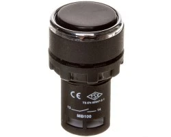 Przycisk sterowniczy serii MB – monoblok z tworzywa, kryty, niestabilny, wyposażony w styki 1NO. Kolor czarny.